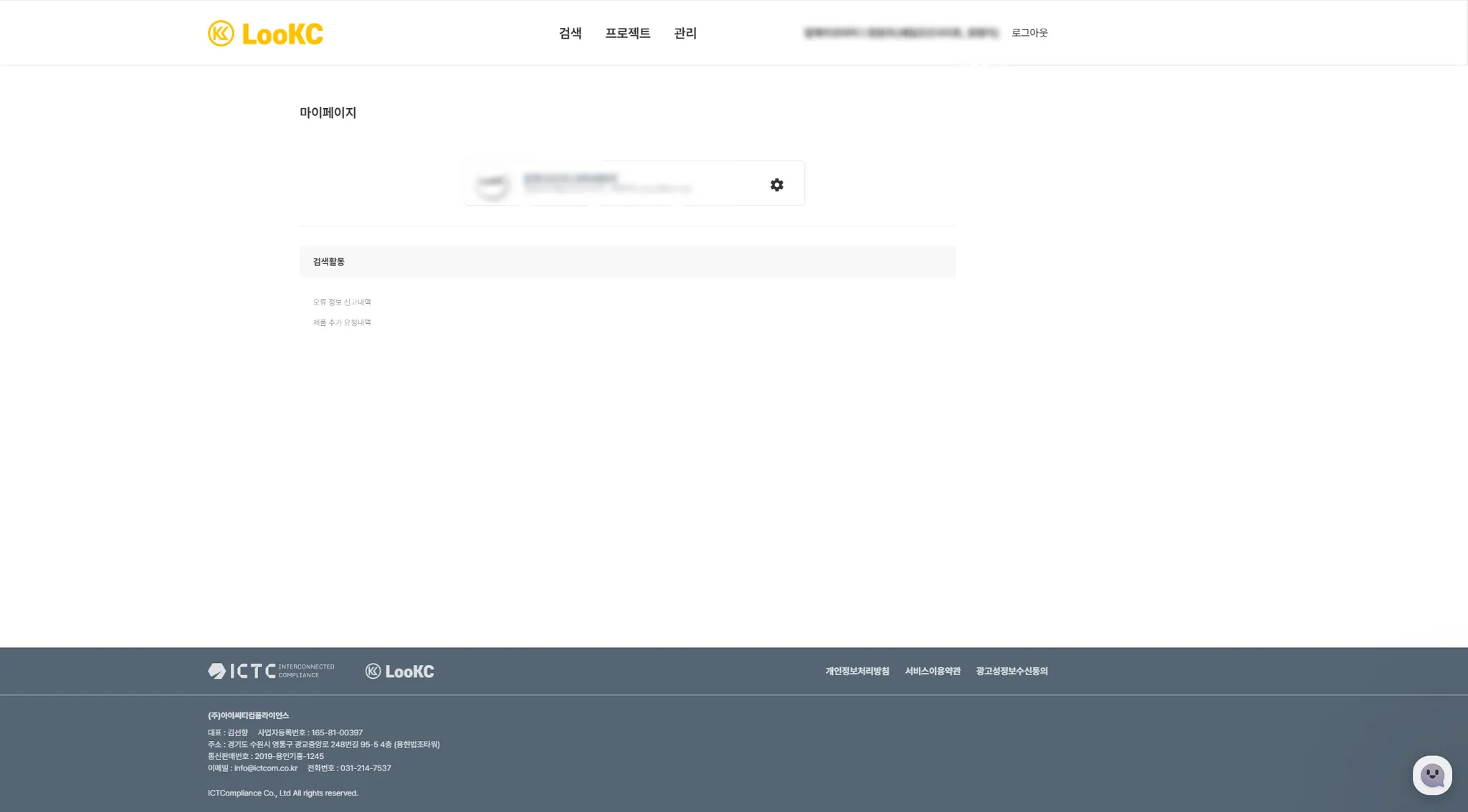 개인 계정 정보와 활동내역을 확인할 수 있는 페이지 입니다.