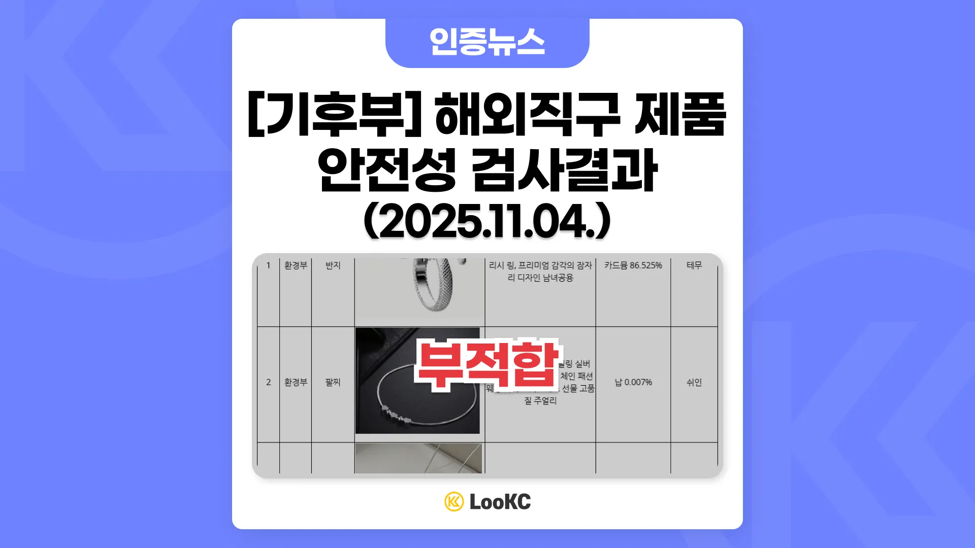 이번 조사에는 성인용 금속장신구에 대해 실시되었습니다.