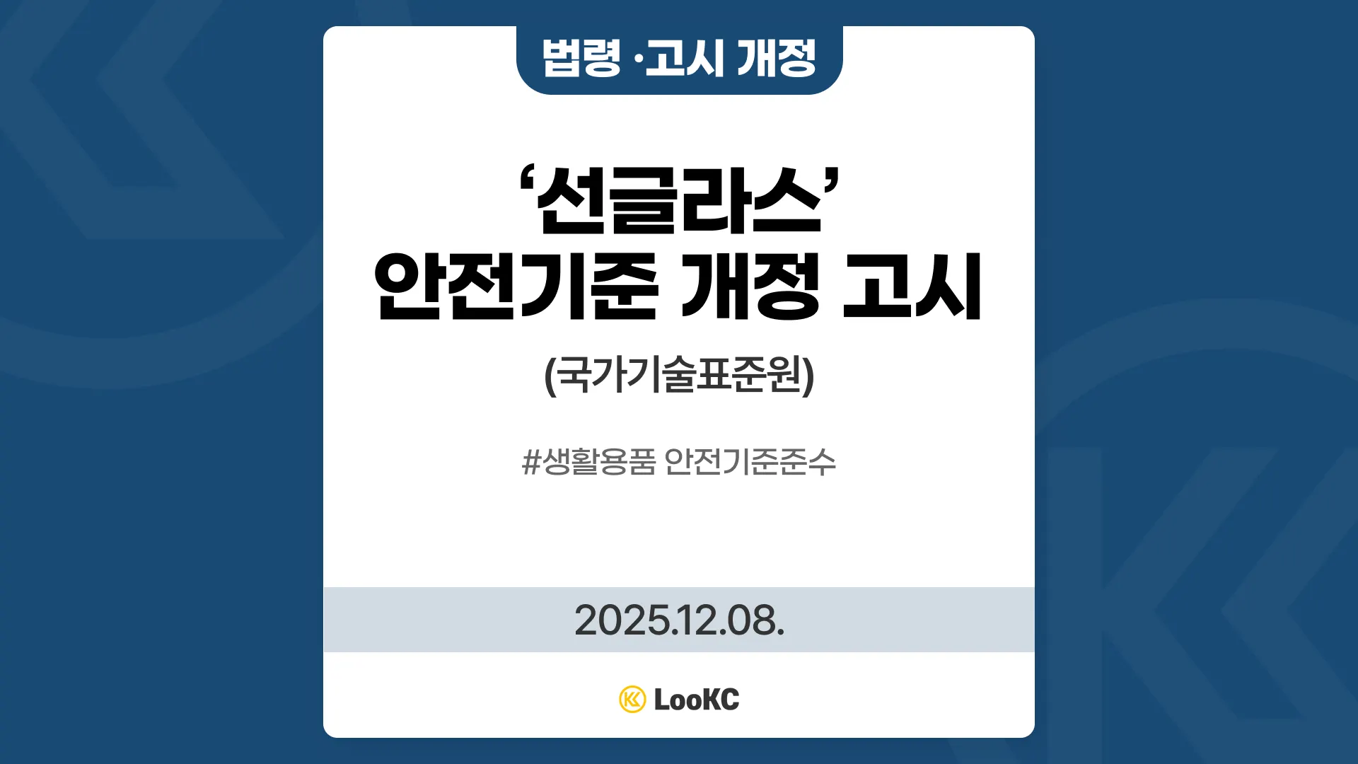 '생활용품 안전기준준수' 대상품목 중 하나인 ‘선글라스'에 대한 안전기준이 개정되었습니다.