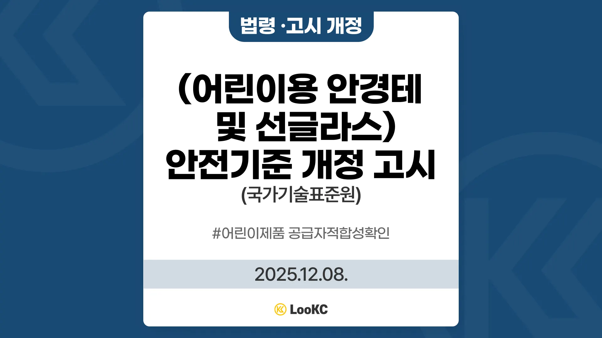 '어린이제품 공급자적합성확인' 대상품목 중 하나인 ‘안경테 및 선글라스'에 대한 안전기준이 개정되었습니다.