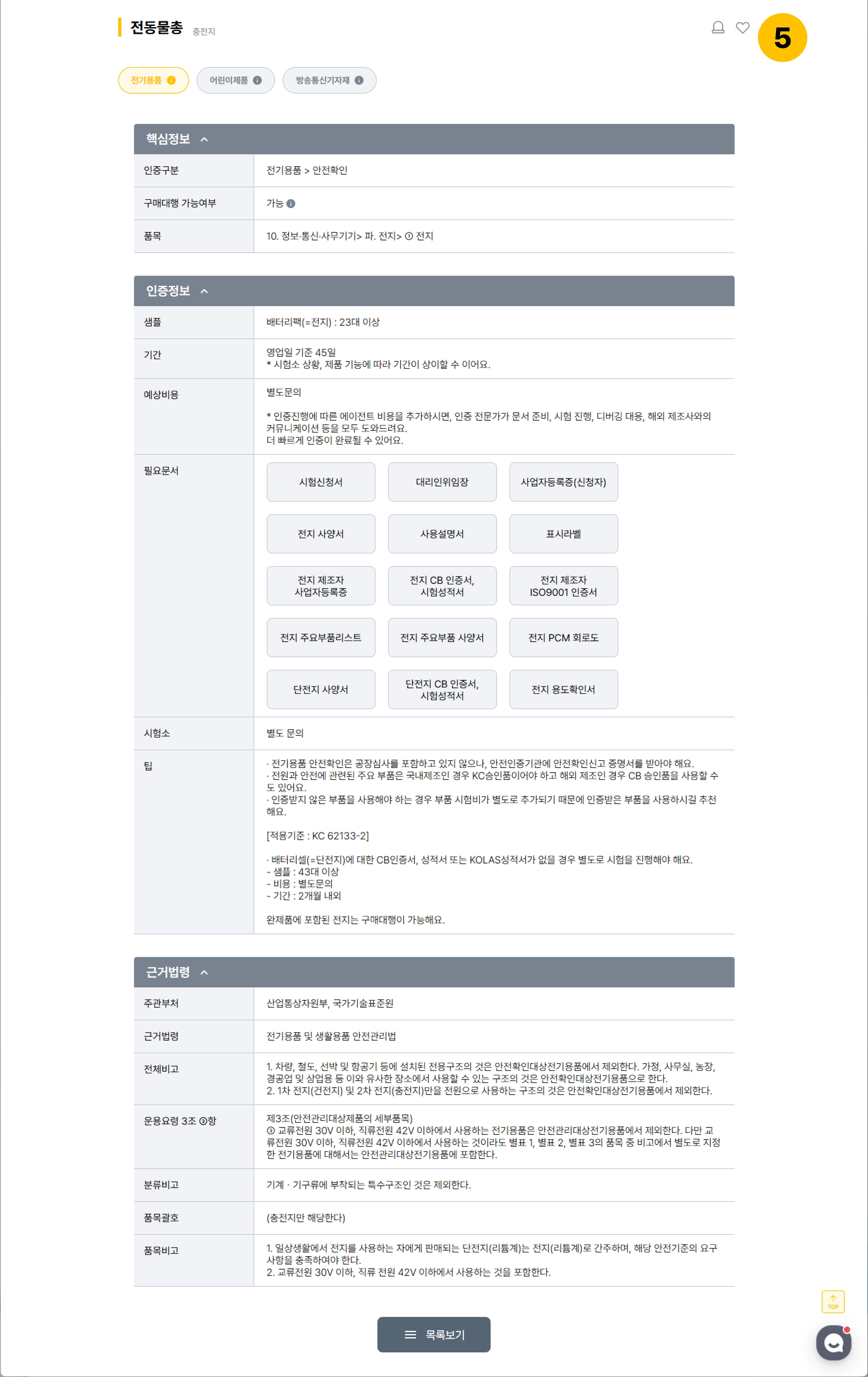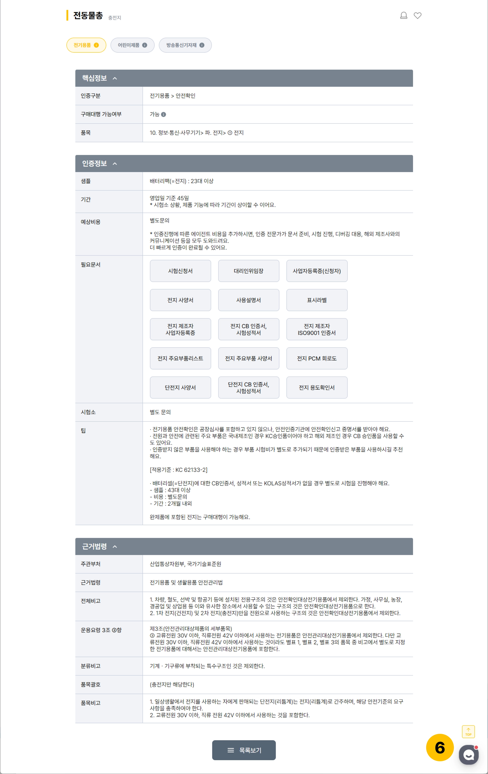 검색한 제품의 인증에 대해 자세히 안내드리는 상세페이지에 대해 알아볼게요.