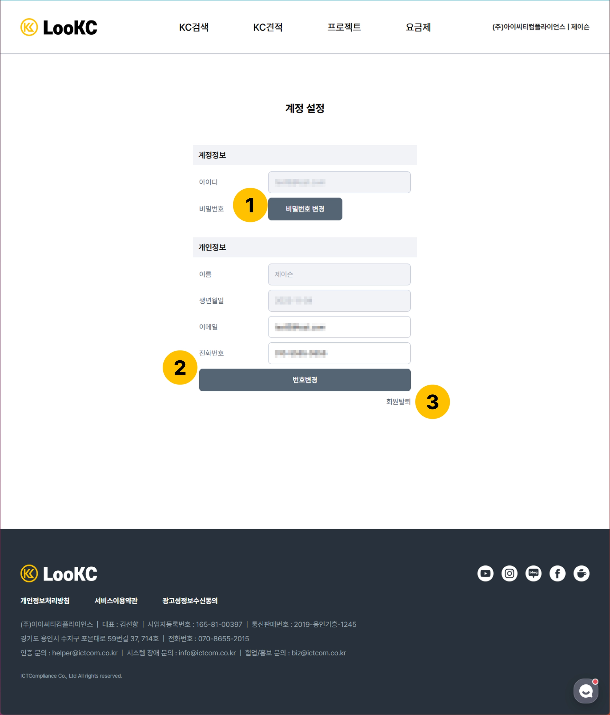 본인인증을 통해 계정에 등록된 전화번호를 변경할 수 있습니다.
