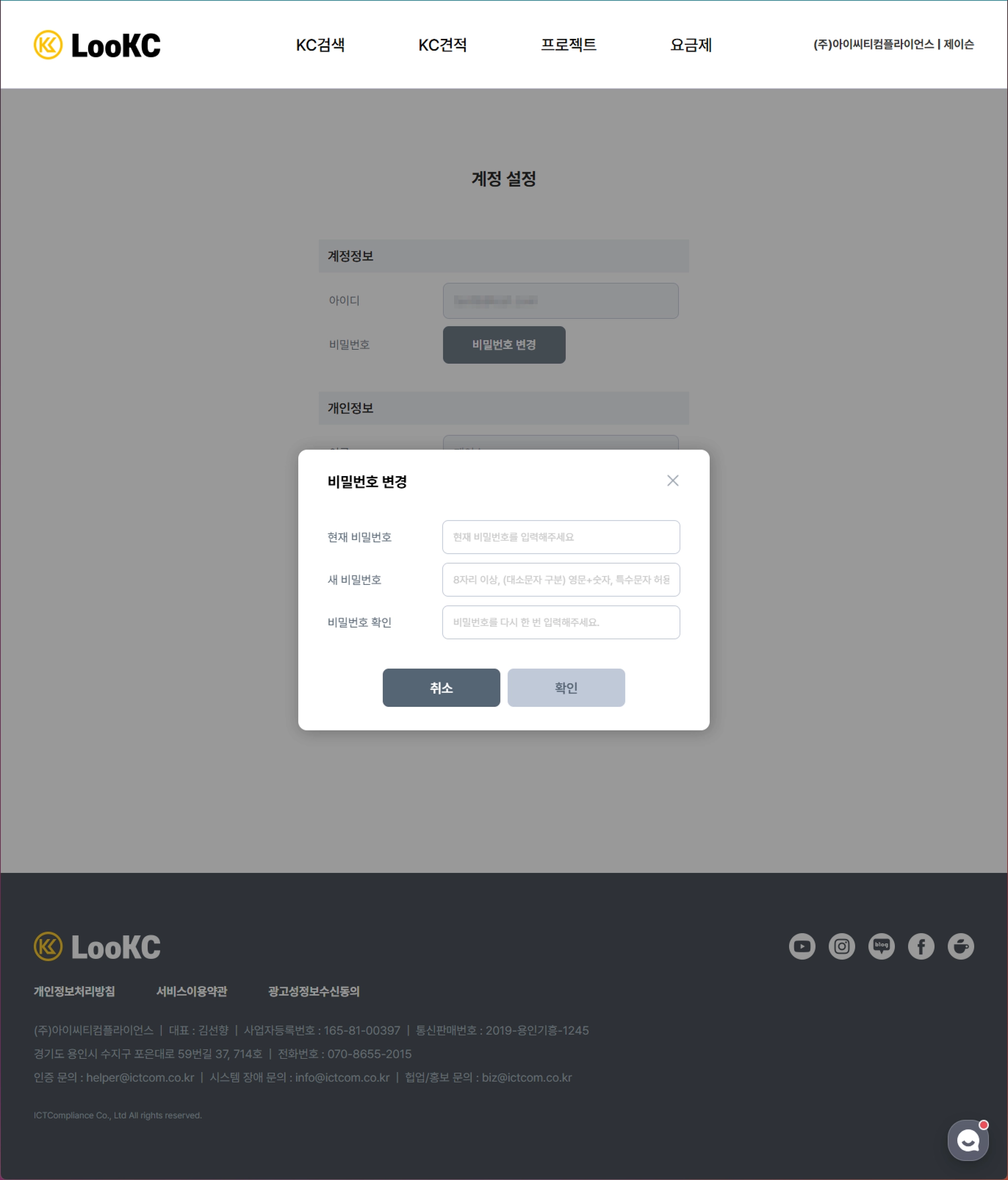 SNS를 통해 가입한 계정은 비밀번호가 설정되지 않기 때문에 별도로 설정, 변경이 불가합니다.