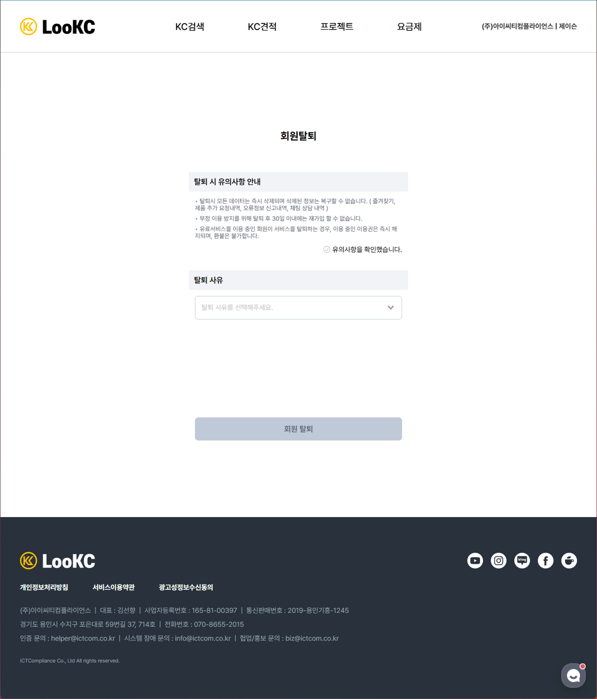 LooKC 서비스를 탈퇴하는 페이지입니다.