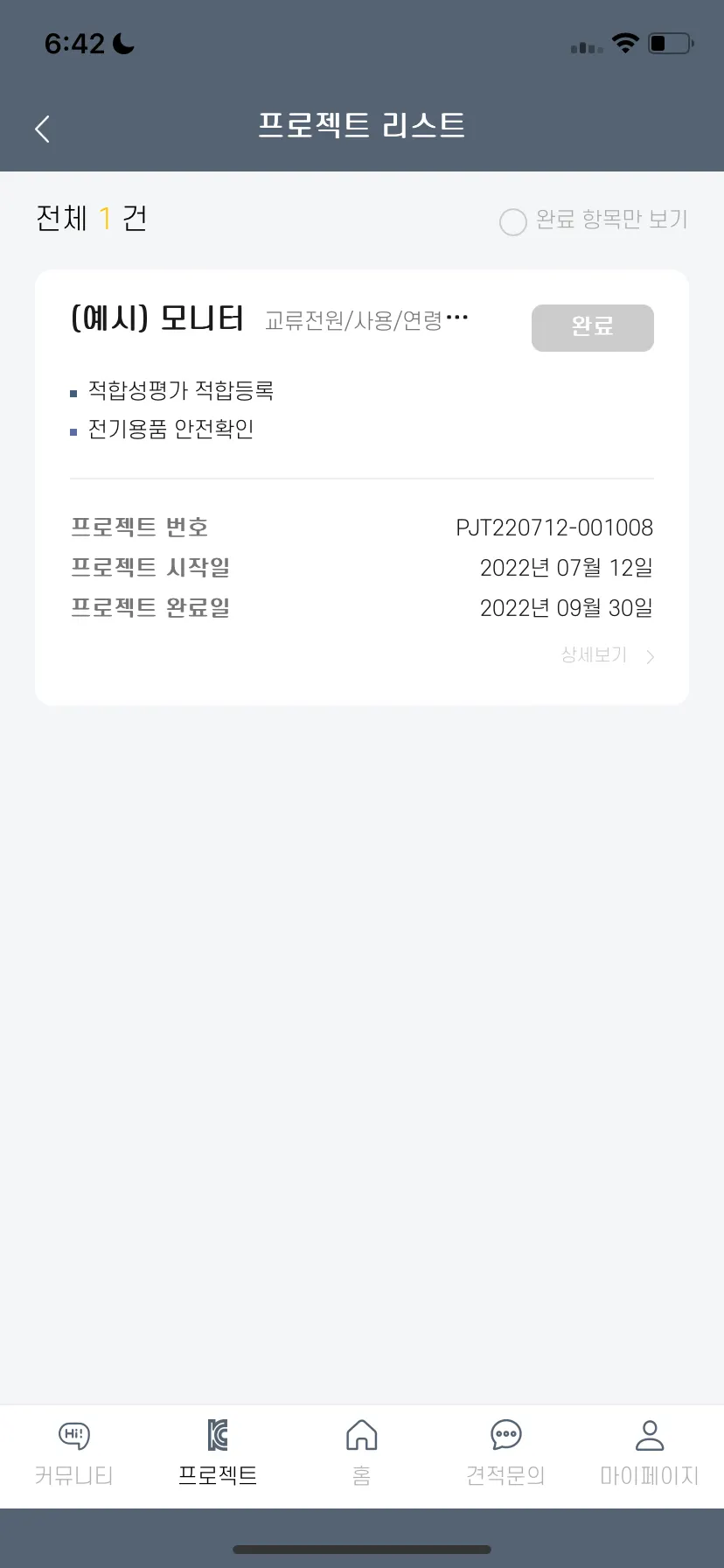 상단 체크로 완료된 프로젝트만 볼 수 있습니다.