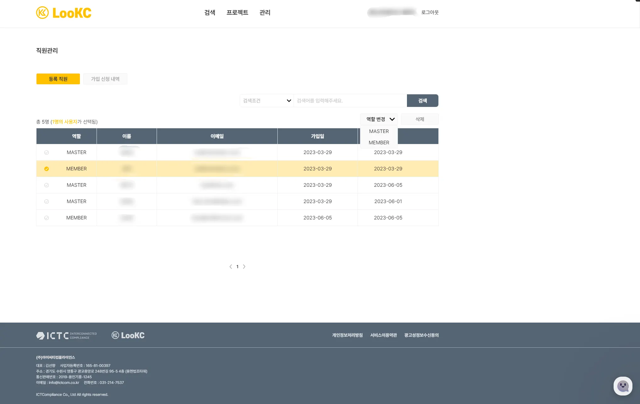 MASTER 회원은 회사 가입 신청내역의 조회 및 승인, 거절을 할 수 있습니다. [준비 중]