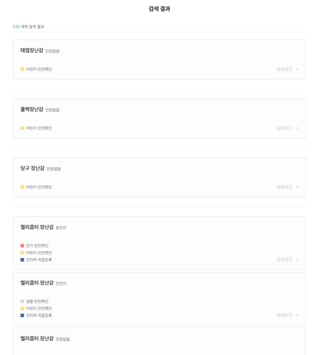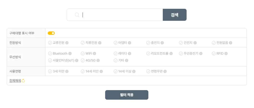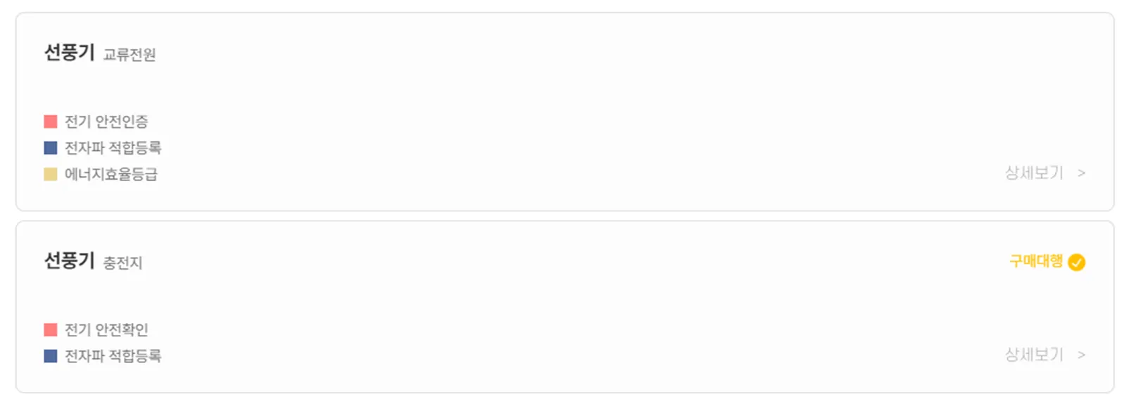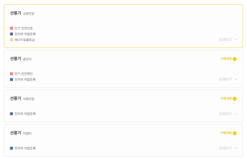 검색 결과에서 제품에 필요한 인증 종류를 알 수 있습니다.