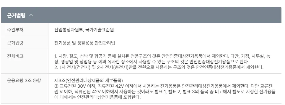 해당 인증이 정말 필요한지 확인 할 수 있는 법적 근거가 기재되어 있습니다.