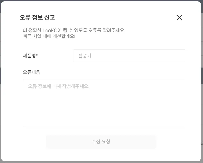 상세페이지 우측상단 오류 정보 신고를 통해 잘못된 정보에대해 신고 할 수 있습니다.