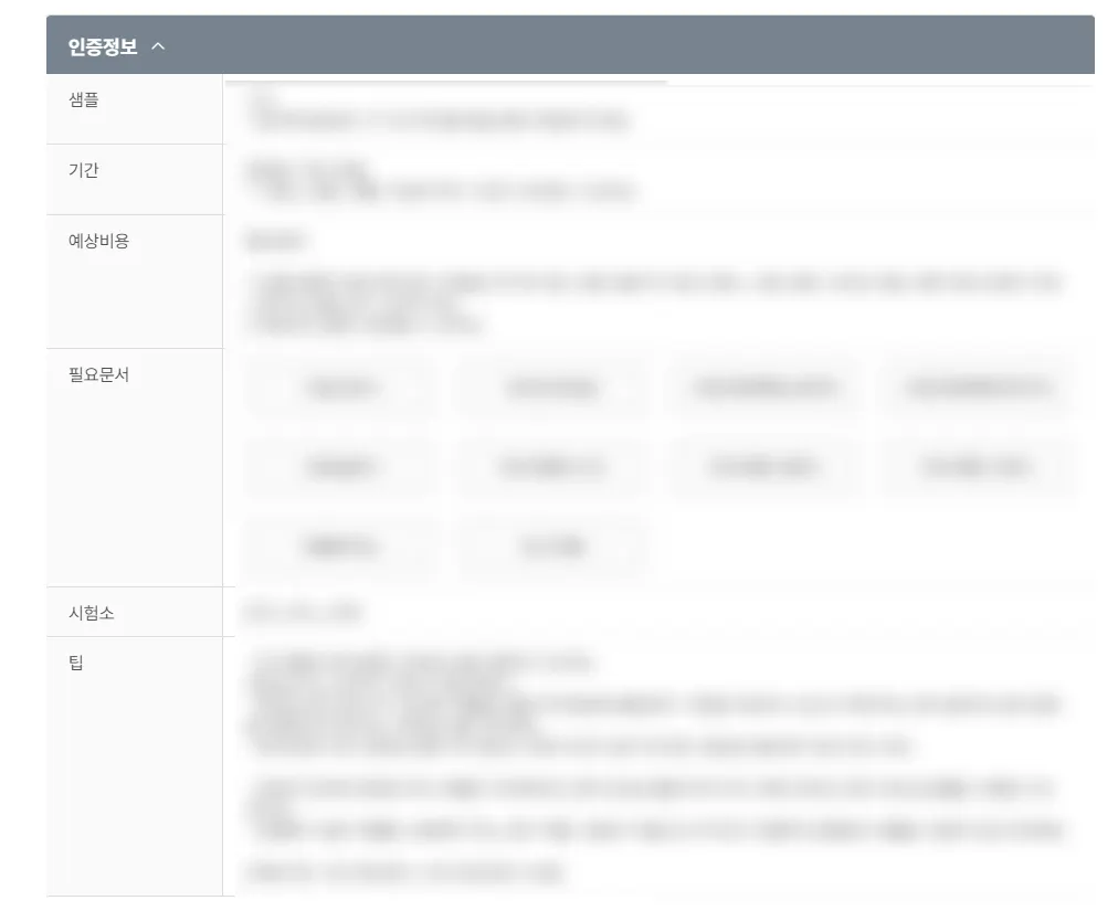 기간 : 인증을 하는데 걸리는 대략적인 기간을 알려줍니다.